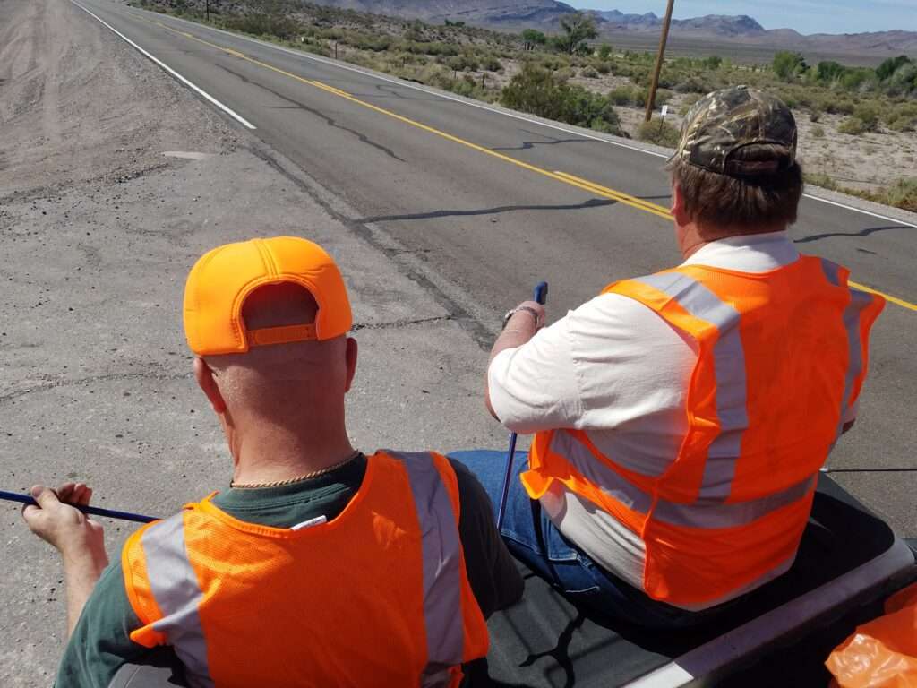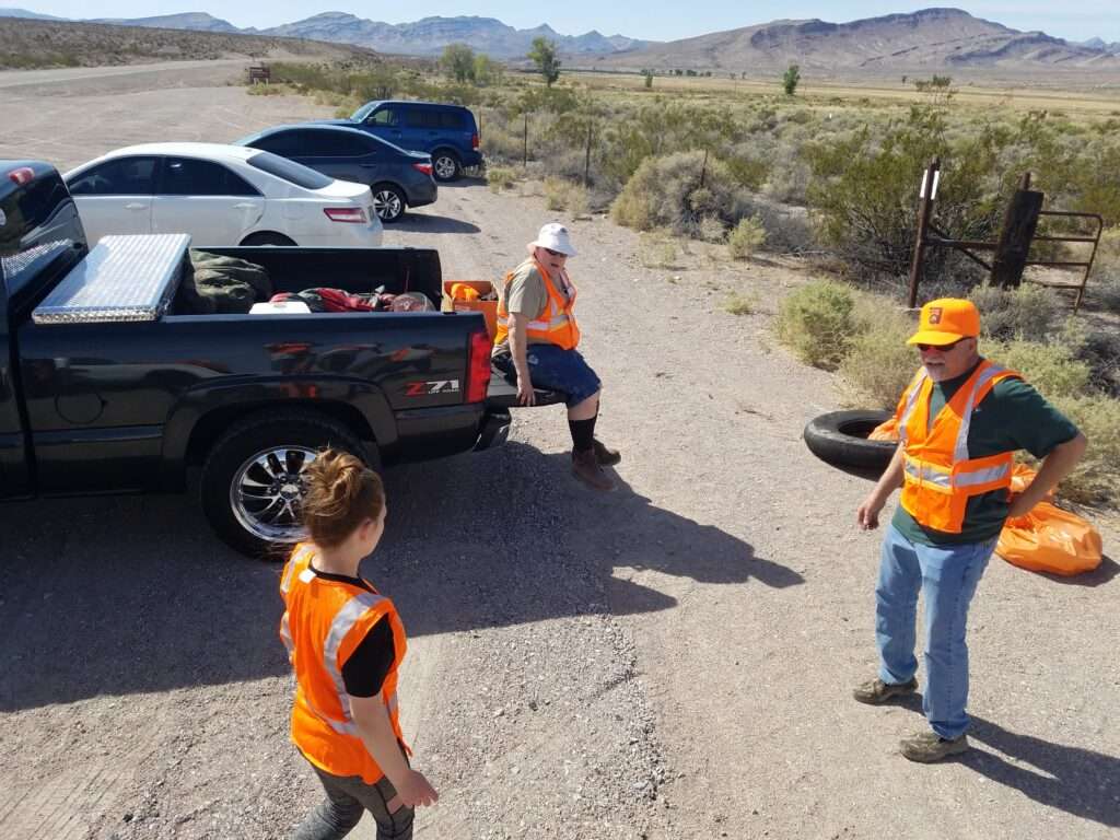 2nd Saturday of March: WHIN went to Lincoln County to do our spring adopt a highway clean-up, we met at Love’s Truck Stop and car-pooled to mile marker 32 where we started the clean-up. There was the usual trash of blown tires, pop cans, glass and plastic bottles and broken car pieces. We had 5 WHIN members come out to help pick up trash along the highway. We filled up almost 2 full truck beds of orange trash bags. It took over 4 hours to clean up, then we dropped off the trash bags at the pick-up point for NDOT to come and pick up. We then went to the Windmill for breakfast (a WHIN tradition).
